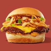 Angus beef cheeseburger with applewood-smoked bacon, chopped cherry peppers, and ShackSauce on a toasted potato bun (Contains: Milk, Egg, Wheat, Soy, Sesame)