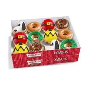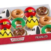 Step into a sweet Christmas season with the Peanuts Christmas Specialty Dozen - a festive lineup that’s as joyful, nostalgic, and heartwarming as your favorite holiday special. This merry mix features 2 Snoopy Cookies & Kreme™ Doughnuts, inspired by everyone’s favorite beagle; 2 Charlie Brown Ornament Doughnuts with that signature charm; 2 Christmas Wreath Doughnuts that look straight off your front door; 2 Santa Belly Doughnuts packed with jolly cheer; 2 Chocolate Iced with Holiday Sprinkles Doughnuts twinkling like Christmas lights; and 2 iconic Original Glazed® Doughnuts for the classic Krispy Kreme magic you know and love. Whether you’re hosting a cozy movie night, surprising the office, or making Christmas morning a little more magical, the Peanuts Christmas Specialty Dozen is a shareable way to celebrate the season with a smile. We'll substitute a delicious, closest match option in the event a doughnut variety becomes unavailable.