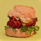 hot spiced fried chicken breast*, dill mayo, thick cut spicy sweet pickles, cilantro *contains gluten