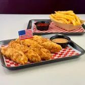 Three 100% all white meat chicken tenders hand breaded to order and fried to perfection, served with a side of our fries, try with our famous scoop sauce. Certified Humane & Halal, antibiotic-free, hormone-free, and sustainably-farmed.