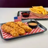 Six 100% all white meat chicken tenders hand breaded to order and fried to perfection, served with a side of our fries, try with our famous scoop sauce. Certified Humane & Halal, antibiotic-free, hormone-free, and sustainably-farmed.