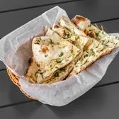 Hand tossed thin multi layered flat bread folded and griled to crisp.