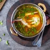 Aromatic flavor of south Indian spices infused with mutton bone stock.