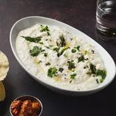 Cooked rice mixed with yogurt (curd), seasoned with mustard seeds, curry leaves for a refreshing and creamy texture.