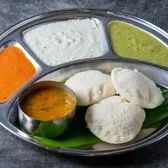 Steamed rice cake made with rice and urad dal batter. Served with sambar and chutney.