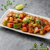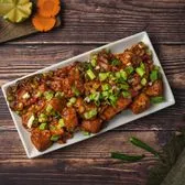 Cottage cheese cubes tossed with soy sauce, chili sauce, fresh green chilies, spring onion and bell peppers.