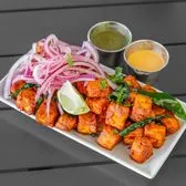 Cottage cheese cubes marinated well and deep fried to crispiness.