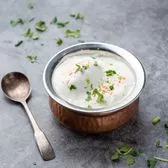 Medhu vada soaked well in a yogurt mix and served cold.