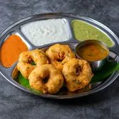 South Indian savory donut made from urad dal with a crispy exterior and soft interior. Served with 3 chutney's and sambar.