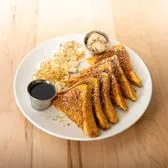 tx challah, cereal topping, maple syrup, cereal milk whipped cream add blueberry, chocolate chips, granola $1