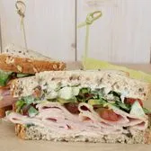 turkey, avocado, roasted red pepper, red grape, cucumber, house greens, Greek yogurt sauce, red wine vinaigrette, multi-grain