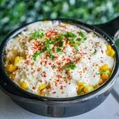 corn kernels, sweet butter, queso fresco, crema, tajin, cilantro, and lime