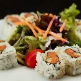 Half †California Roll served with miso soup, uchi no salad, rice, and shrimp vegetable tempura. With your choice of; - *Steak Teriyaki - Chicken Teriyaki - Chicken Katsu - Salmon Teriyaki