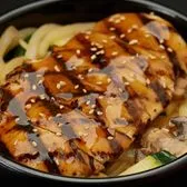 Grilled chicken served over rice with sauteed zucchini, mushrooms, and onions, topped with teriyaki sauce