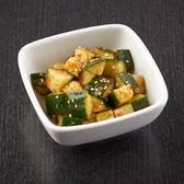Diced cucumber tossed in spicy kimchi sauce; topped with sesame seeds and togorashi.
