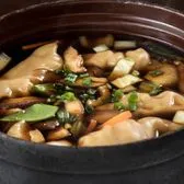 Shrimp simmered in a spicy miso broth with tofu, green onions, mushrooms and spinach.