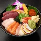 Two sashimi slices of each; tuna, yellowtail, salmon, whitefish, and octopus; shrimp, flying fish and sweet egg nigiri, krab†, wakame and cucumber; served over rice.