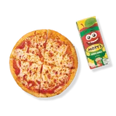 Mozzarella and pizza sauce on half of a regular pizza crust. For kids 12 and under. Includes kid’s fountain beverage (0-170 cal), or apple juice (100 cal).
