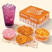 Featuring 2 pieces of our classic or spicy Signature Chicken, served with Homestyle Mac & Cheese or any side of your choice, Gum-Gum Fruit Lemonade, and Chopper’s Cupcake.