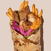 Build it your way. Choose a protein, rice, and toppings — all wrapped in our famous flatbread, grilled to order at 700°. Add hummus, feta, fries, & our signature sauces. 810-920cal