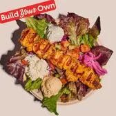 Build Your Own: Choose SuperGreens or Romaine. Comes standard with Garlic Yogurt Sauce, Red Cabbage Slaw, Romaine, Pickled Onions, Tomatoes, Cucumbers. 370-1130cal