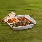 Grilled beef fajita with bell peppers, onions and tomatoes.