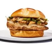 You can build it exactly how you like it, starting with hand breaded chicken breast or grilled chicken breast. Includes choice of fries. 1050 - 2180 cal (includes choice of curly or waffle fries and choice of cheese)