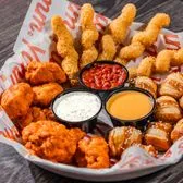 Choose three Red Robin® favorites to make an appetizer trio! Cheesy Mozzarella Twists with marinara, Pretzel Bites with New Belgium Fat Tire® beer cheese, Boneless Chicken Bites tossed in your choice of dry rub or sauce, Crispy Fried Pickles with ranch, Zucchini Fries with ranch, or our famous Onion Rings with Campfire Mayo.
