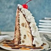 Layers of chocolate and vanilla ice cream, cookie dough chunks, chocolate cookie crumbs, fudge and caramel. Topped with whipped cream and a cherry.