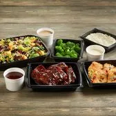 3 Sliced Chicken Breasts | 4 Quarter Racks of Baby Back Pork Ribs Glazed with BJ’s Peppered BBQ Sauce | 2 Family-Sized Sides | 1 Family-Sized Salad