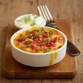 White cheddar mashed potatoes | smoked bacon | jack + cheddar cheese | topped with green onions