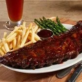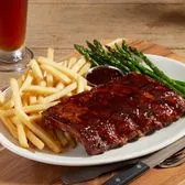 Slow-roasted overnight baby back ribs | sweet + savory pork seasoning | BJ’s Peppered BBQ sauce | choice of two signature sides