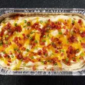 Topped with bacon crumbles, cheese and green onions.