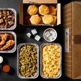 Boneless chicken breasts fried just right. Served with two classic sides and buttermilk biscuits.