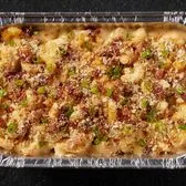 Topped with bacon crumbles, parmesan cheese and green onions.