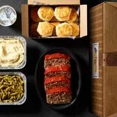 Meatloaf made with a hearty blend of beef, onions, bell peppers, and tomatoes. Served with two classic sides and buttermilk biscuits.
