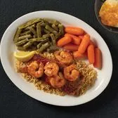 Crispy buttermilk-breaded shrimp and hushpuppies served over fries. Served with two or three classic sides and buttermilk biscuits or corn muffins.