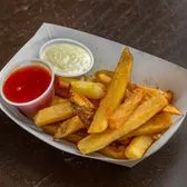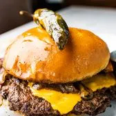 two brisket patties, american cheese, grilled onion, grilled jalapeños, fries