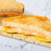 Melted cheddar, provolone, parmesan, and Swiss cheeses layered with pickle chips, finished with dill pickle ranch on toasted country white bread.
