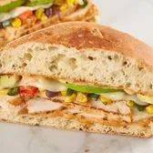 Grilled chicken, roasted corn, poblano and black bean relish, Pepper Jack, avocado, and chipotle ranch on a toasted jalapeño roll.