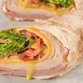 Roasted turkey, Black Forest ham, and all the usual toppings, wrapped in a wheat wrap.