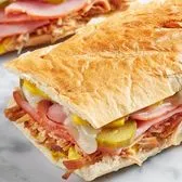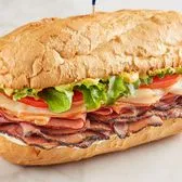 Roasted turkey, Black Forest ham, Black Angus roast beef, provolone, spring mix, tomato, mayo, and spicy brown mustard on 6-inch or 12-inch baguette. Includes a side.