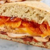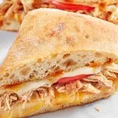 Smoked Pulled Pork, Honey Mustard BBQ Sauce, Swiss, Cheddar, Parmesan Cheese, Provolone Cheese and Tomato on Toasted Ciabatta