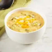 Cheddar and Monterrey Jack Cheese mixed with chunks of Broccoli in a creamy base made from chicken broth.