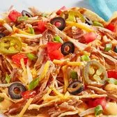 Smoked Pulled Pork, Cheese Dip, Cheddar-Jack, Tomato, Black Olives, Green Onions, Jalapeños and Drizzle of Honey BBQ Sauce, served over Tortilla Chips