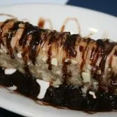 Tino's Greek Cafe9901 Brodie LaneOpen now$4.49delivery feeFOODPLATESWRAPSSOUP/SALADKIDSSHAREABLESDESSERTEXTRA SIDESSPECIALSDESSERTChoclavaRich, sweet dessert pastry made of layers of filo filled with chopped nuts and sweetened and held together with honey Topped with Chocolate$3.25Baklava$3.25