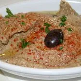 Carefully baked eggplant blended with garlic, Tahini , and lemon juice