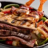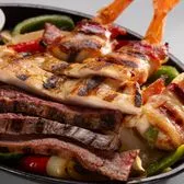 Mesquite grilled jumbo bacon wrapped shrimp stuffed with Monterey Jack cheese and fresh jalapeño with mesquite grilled chicken and steak fajitas. Served with Mexican butter, fresh guacamole, sour cream, cheese, sautéed peppers and onions, and our homemade flour tortillas.