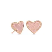 Ari Heart Rose Gold Stud Earrings in Pink Drusy