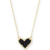 Ari Heart Gold Pendant Necklace in Black Drusy